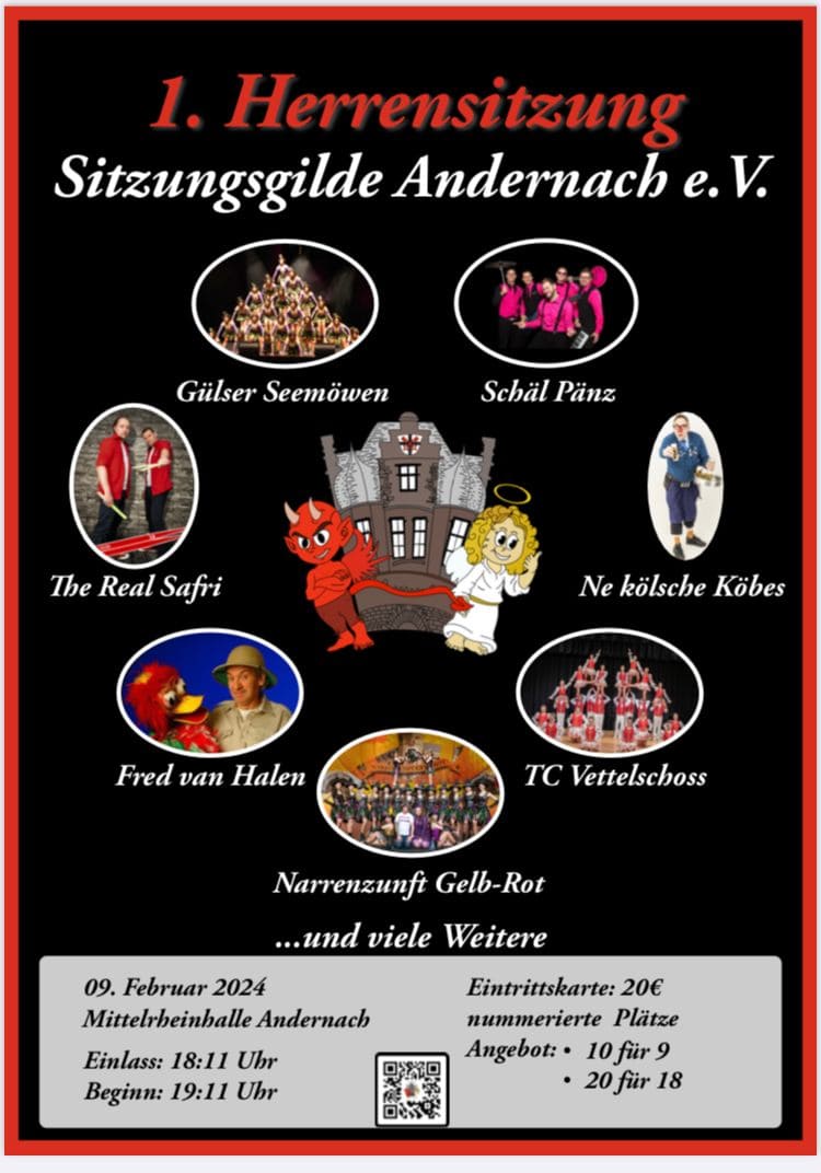 Mit der ersten eigenen Herrensitzung setzte die Sitzungsgilde Andernach e.V. ein starkes Zeichen für frischen Wind im Andernacher Karneval. Die Mittelrheinhalle war nahezu ausverkauft, das neue Bühnenbild und der feierliche Einzug des Elferrats sorgten für ein stimmungsvolles Ambiente.